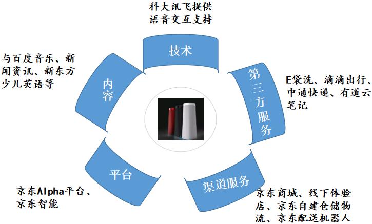 2.通過強(qiáng)強(qiáng)聯(lián)合的方式,京東通過電商平臺優(yōu)勢,整合行業(yè)中的技術(shù)廠商、內(nèi)容廠商及第三方服務(wù)廠商,并發(fā)起“京東智能音頻聯(lián)盟”,向聯(lián)盟內(nèi)成員輸出“JD+智能音頻解決方案”,實現(xiàn)叮咚音箱產(chǎn)品與優(yōu)質(zhì)內(nèi)容、服務(wù)的結(jié)合。