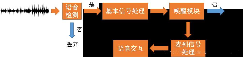 總體而言,音箱工作時,麥列始終處于拾音狀態(tài)(持續(xù)對聲音信號進(jìn)行采樣、量化)。經(jīng)過基本的信號處理(靜音檢測、降噪等),喚醒模塊會判斷是否出現(xiàn)喚醒詞。如果出現(xiàn)喚醒詞,后續(xù)語音會進(jìn)行更復(fù)雜的語音信號處理,(理想情況下)得到干凈的語音信號,開始真正的語音交互流程。