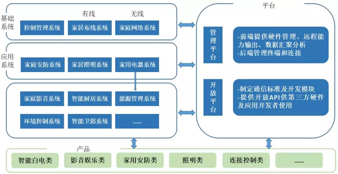 智能家居平臺(tái)的概念與Facebook、蘋(píng)果App應(yīng)用商店類(lèi)似,智能家居平臺(tái)商制定通信標(biāo)準(zhǔn)及開(kāi)發(fā)模塊等,然后提供開(kāi)放API(應(yīng)用程序編程接口)供第三方硬件及應(yīng)用開(kāi)發(fā)者使用,所有的硬件及應(yīng)用產(chǎn)品就可以無(wú)縫連接至平臺(tái)操作系統(tǒng),進(jìn)而平臺(tái)商、第三方硬件及應(yīng)用開(kāi)發(fā)者、用戶(hù)構(gòu)成一個(gè)全新的智能家居平臺(tái)生態(tài)鏈。目前國(guó)內(nèi)市場(chǎng)上活躍度比較高的有青島海爾家居集成股份有限公司、全智慧科技(北京)有限公司、美的集團(tuán)股份有限公司(公開(kāi)A股)、小米科技有限責(zé)任公司、深圳市電陶思創(chuàng)科技有限公司、北京京東世紀(jì)貿(mào)易有限公司、北京百度網(wǎng)訊科技有限公司、阿里巴巴(中國(guó))有限公司等8家企業(yè)。
