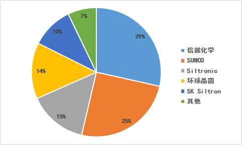 從全球來看,硅材料具有高壟斷性,全球一半以上的半導(dǎo)體硅材料產(chǎn)能集中在日本,尤其是隨著尺寸越大、壟斷情況就越嚴(yán)重。2018年,全球前五大半導(dǎo)體硅片廠份額近92%,其中Shin-Etsu(信越化工)、Sumco、Siltronic、Global Wafers(環(huán)球晶圓)與SK Siltron分別占比為28.50%、25.15%、14.69%、14.04%、10.50%。國(guó)內(nèi)硅片材料重點(diǎn)企業(yè)包括硅產(chǎn)業(yè)/上海新昇、中環(huán)股份、有研新材等。