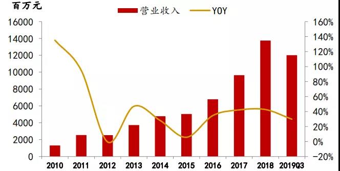 圖表16 中環(huán)股份營(yíng)業(yè)收入(百萬元)