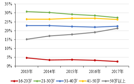 中國(guó)農(nóng)民工年齡構(gòu)成(%)