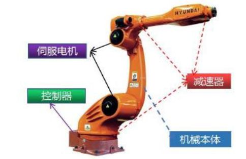 工業(yè)機(jī)器人核心零部件包括減速器、控制器和伺服系統(tǒng)等。減速器是機(jī)械傳動(dòng)的核心,機(jī)器人的速度、精度都與減速器有關(guān),工業(yè)機(jī)器人使用的減速器主要是諧波減速器和RV減速器。