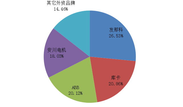 2017年中國(guó)機(jī)器人市場(chǎng)外資品牌占比(%)