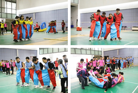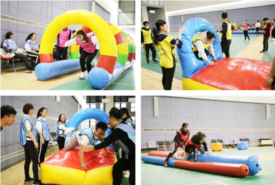“螃蟹過河”挑戰(zhàn)團(tuán)隊(duì)協(xié)作與配合。每四人組成一只可愛的“螃蟹”,在最短的時(shí)間內(nèi)往返通過獨(dú)木橋的隊(duì)伍即獲得勝利。螃蟹服形態(tài)臃腫,褲腿相連,給隊(duì)員們?cè)鎏砹瞬簧俦荣愲y度,參賽隊(duì)員們?cè)跇O短的時(shí)間內(nèi)商量戰(zhàn)術(shù),迅速統(tǒng)一思想,賽場(chǎng)上他們口號(hào)整齊,步伐一致,為了完成同一個(gè)目標(biāo)而齊心協(xié)力、共同努力,在日常工作中積累的信任與默契展露無(wú)遺。
